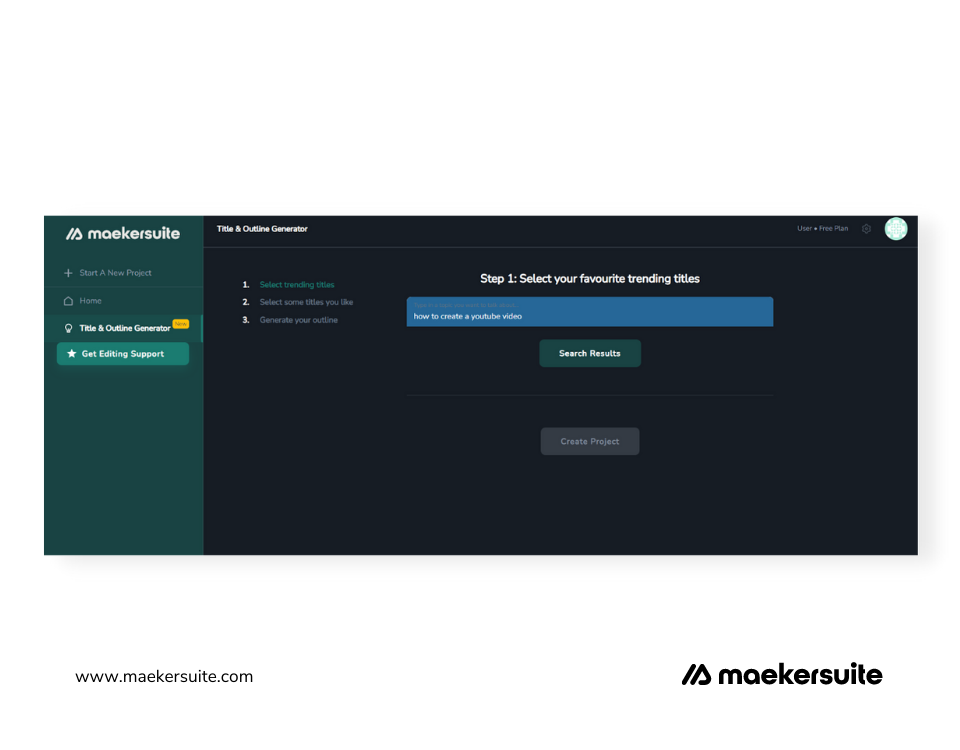 Maekersuite’s AI-powered Title and Outline generator streamlines the script-writing process for YouTube videos. By suggesting titles and outlines, it helps users to create scripts quickly and efficiently. With its free video script template, the Title and Outline Generator tool makes it possible to create video scripts within a matter of minutes.